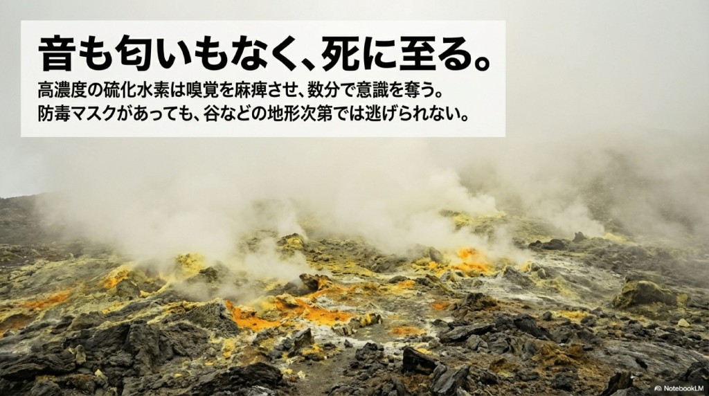 有毒ガスが溜まる谷地形